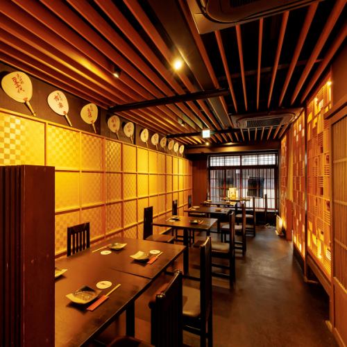 【雰囲気抜群◎】趣き溢れる雰囲気◎席の間隔もしっかりり空いておりますので、都会の喧騒をゆっくりとお食事をお楽しみ頂けます。お仕事帰りはもちろん、女子会やデートにもぜひ。(鍋/鴨川/懐石/和食/京料理/肉/海鮮/河原町/忘年会/新年会/飲み放題/貸切/三条/祇園)